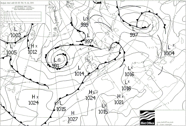 Po severním okraji výběžku vyššího tlaku vzduchu postupuje frontální